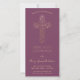 Esta moderna y hermosa invitación a la Primera Comunión Santa presenta un ilustracion floral de Relieve metalizado dorado simulado con las palabras "Primera Santa Comunión" en un tipo de letra elegante a juego. El fondo es violeta (ciruela, fuschia) y se puede cambiar a cualquier color que se desee. El texto (palabras y color) se puede personalizar para la ocasión religiosa especial de su hijo o hija.