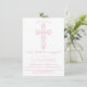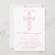 Esta moderna invitación a la Primera Comunión presenta una elegante cruz floral blanca y rosa ilustrada. Ideal para una celebración religiosa de un chica, puede ser personalizada con el nombre de su hijo y los detalles del evento. El color de fondo también se puede cambiar a tu gusto.