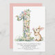 Haga especial su primer cumpleaños con esta encantadora invitación, que incluye un delicado ilustracion acuático del número 1, muy bien elaborado a partir de diminutas y coloridas flores pastel. Un bonito conejito se alza junto al número, coqueteando en las flores, añadiendo un toque de dulzura y alegría al diseño.