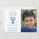 Esta primera invitación moderna y elegante de la foto de la comunión santa ofrece una cáliz, un trigo, y un anfitrión - símbolos de la eucaristía. Las palabras "primera comunión santa" se escriben en una fuente azul elegante. El texto, la foto, y el color de fondo (en la parte posterior) se pueden modificar para requisitos particulares a su tener gusto. Una de manera perfecta a invita a huéspedes a la ocasión religiosa especial de su hijo.
