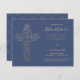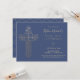 Esta primera y moderna invitación a la comunión sagrada presenta una intrincada cruz de estilo "Relieve metalizado de oro" (simulado) y las palabras "Primera Santa Comunión" en un estilo moderno. El fondo es azul marino, pero se puede personalizar según el color que desee.