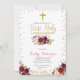 Primera invitación de la comunión santa del oro elegante con el confeti del oro y el marsala hermoso florales.