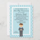Comience su celebración apagado con esta invitación adorable para eso primera comunión santa de los muchachos especiales. Tiene una luz y una frontera grande azul marino del lunar. en el centro hay un centro azul claro con una frontera blanca alrededor de ella allí es un muchacho adorable que lleva un juego gris con un lazo azul. Él tiene pelo marrón. Compruebe hacia fuera los muchos otros artículos en esta línea tal como etiquetas, franqueo, agradezca le las notas, y más.