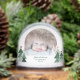 Primera Navidad Árticos Rústicos Dos Fotos Globe De Nieve. Celebra un mágico hito con esta personalizado foto de la primera Navidad del globo de nieve. Cuenta con árboles festivos y espacio para fotos en ambos lados, perfecto para capturar momentos de recién nacidos o la primera temporada de fiestas de bebés. Personaliza con nombres y un año especial para crear un conservador que toda la familia valorará. Un regalo encantador o acento de decoración de vacaciones para padres y seres queridos nuevos.