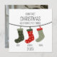 Navidades diseñan como una familia de tres con calcetines de Navidad coloridos con el nombre de los miembros de la familia. Es un gran regalo para recordar los hermosos momentos familiares. Puede cambiar fácilmente el color de fondo. Es fácil de personalizar cambiando los nombres/fecha/texto, etc.