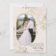 La recién casada tarjeta de foto navideña con la leyenda "Nuestra primera navidad como mr y mrs" y personalizada con la foto y el saludo de tu personalizado. Diseño rústico miminalista con la naturaleza inspirado en la línea botánica del holly y el pino en colores tierra-neutros incluyendo el rosa polvoriento, el marrón y el oro de lujo. Su foto se muestra en formato vertical en forma ovalada moderna. Bonito diseño para tu primera navidad casada. Por favor, navegue por mi colección de tarjetas de fotos casadas de Navidad para más diseños.