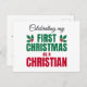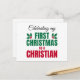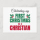 Elegante PRIMERA NAVIDAD COMO Navidades NACIONALES CRISTIANOS, con TEXTO DE PERSONALIZABLE Y FECHA. El diseño muestra Navidades verdes y Navidades rojos negrita sans serif tipografía con elementos rojos y verdes sans. Una gran postal de Navidades festivos para enviar a tu familia, amigos, vecinos y compañeros de trabajo como nuevo creyente cristiano. Puede PERSONALIZAR EL MENSAJE al revés. Ideal como Navidades de la iglesia Postcard o regalo de favores para los nuevos creyentes que celebran a sus primeros Navidades cristianos. Hay regalos coincidentes disponibles.