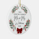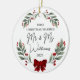 Un ornamento Boda personalizado usado para Navidades para celebrar el primer año como pareja casada. Acabo De Casarse, Sr. y Sra. Ornamento De Navidad, Ornamento Recién Casado, Navidades Casados. Celebra tu primera temporada de fiestas como pareja casada con nuestro adorno de la 'Primera Navidad Casada'. Este conservador personalizado es la adición perfecta a tu árbol de Navidad, sirviendo como un recordatorio atemporal de tu primera Navidad juntos —un momento que apreciarás en los años venideros. Diseño personalizado: agregue sus nombres y fecha de boda para crear un keepsake único que sea exclusivo suyo. Regalo perfecto: Una opción atenta y apreciada para los recién casados, este adorno hace que el boda o la ducha de novia sea el lugar ideal. Uso versátil: ¡Más que sólo un adorno de árbol! Muestra este hermoso recuerdo en tu hogar todo el año como un recordatorio duradero de tu día especial. Nuestro adorno de 'Primera Navidad casada' es más que solamente una decoración —es un profundo palo, que simboliza el inicio de tu viaje juntos. Cada ornamento está diseñado meticulosamente para capturar la alegría y el amor de tu primera temporada de vacaciones como pareja casada.