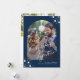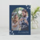Moderno y elegante guión caligráfico 2 primera Navidad juntos como Sr. y Sra. foto boda oscuro medianoche azul marino tarjeta de vacaciones con foto de arco, texto personalizado y copos de nieve blancos. ¡Fácil de personalizar con 2 fotos y texto en ambos lados!