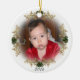 El primer ornamento de Navidad del bebé. Añade tu foto e información para un toque único y personal. El reverso del adorno tiene una acuarela de la Madre Bendita María y el Niño Jesús.