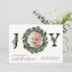 Celebre sus primeras vacaciones con esta tarjeta de fotos botánica y elegante de Navidad Baby First. Un diseño JOY audaz sobre un fondo blanco limpio presenta la foto de su bebé dentro de la "O", enmarcada por una corona de Navidades botánicos de acuarela, mientras que la "J" y la "Y" están decoradas con vegetación festiva. Debajo, las elegantes letras y el guión resaltan sus nombres personalizados, "Primera Navidad", su saludo de vacaciones, y el nombre de la familia, creando un conservador moderno y atemporal para compartir con sus seres queridos.