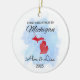Un Ornamento Estatal Personalizado de Michigan usado para Navidades con ocasión de celebrar la primera Navidad viviendo juntos como pareja, familia o recién casados en los Estados Unidos de América. Celebra tu primera temporada de vacaciones en el estado de Michigan con nuestro adorno de los "Estados Americanos". Este conservador personalizado es la adición perfecta a tu árbol de Navidad, sirviendo como un recordatorio atemporal de tu primera Navidad juntos —un momento que apreciarás en los años venideros. Diseño personalizado: agregue sus nombres y fecha para crear un keepsake único que sea exclusivo suyo. Regalo perfecto: Una elección atenta y apreciada para recién casados y nuevos propietarios. Uso versátil: ¡Más que sólo un adorno de árbol! Muestra este hermoso recuerdo en tu hogar todo el año como un recordatorio duradero de tu año especial. Nuestro ornamento de ‘Estados Americanos’ es más que una simple decoración —es un profundo regocijo, que simboliza el inicio de tu viaje juntos. Cada ornamento está diseñado meticulosamente para capturar la alegría y el amor de su primera temporada de vacaciones en su nuevo hogar encontrado.