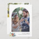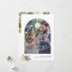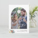 Caligrafía moderna primera Navidad juntos como Sr. y Sra. tarjeta de vacaciones de boda con foto de arco, texto personalizado y un pequeño ramo floral botánico de acuarela de Navidad estacional.