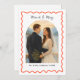 Celebre su primera temporada de fiestas como recién casados con esta elegante tarjeta de foto "Casados y Felices". Cuenta con un encantador marco de borde rojo ondulado, perfecto para mostrar su foto de boda o de pareja favorita. Personalice con sus nombres y año en la parte delantera, y agregue su mensaje sincero en la parte posterior. Ideal para anunciar su matrimonio o enviar cálidos deseos de fiesta a familiares y amigos.