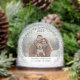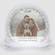 Celebra la primera Navidad del cachorro con este encantador globo de nieve, perfecto para los nuevos padres del perro! Presenta el texto "Nuestra primera navidad como familia de tres". Este regalo personalizado de Navidades es un bello aguijón a apreciar en los años venideros. una corona verde claro enmarca la foto de tu nuevo agregado a la familia. En la parte de atrás, agregue la foto de su cachorro y retrato al frente con el año.