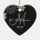 Ornamento en forma de corazón del navidad del efecto negro de la pizarra. Primer ornamento del navidad del par simple con la foto en inicial del frente y del monograma en la parte posterior con los copos de nieve blancos. Elke Clarke©. Para los recienes casados y los padres de pares nuevamente casados como recuerdo de su día de boda. Los copos de nieve blancos y y la banda opaca junto con su foto del boda componen este diseño elegante. Para más opciones que corrigen, incluyendo la fabricación de su ajuste de la foto, "personalizar selecto él" para el menú del corregir.