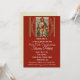Disfrutarás enviando esta hermosa invitación de personalizado diseñada por la Primera Santa Comunión para la Primera Comunión de tu hijo o hija. Esta es una imagen católica tradicional de Jesús sosteniendo el Anfitrión mientras está rodeado de ángeles y flores. El cáliz dorado está frente a Él. Las ramas doradas le dan un toque de elegancia. En la parte trasera se encuentra una hermosa cita de San Francisco de Asís, que usted puede elegir usar o reemplazar por el suyo propio. Se pueden modificar todos los tipos de texto y fuentes.