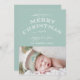 Esta tarjeta plana de felicitación navideña verde menta y blanca con sus fuentes de escritura vintage y espacio para la foto de su bebé es una excelente opción para la felicitación de la primera Navidad de su bebé. Diseño de Elke Clarke© FELIZ NAVIDAD Y UN FELIZ AÑO NUEVO.