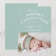 Esta tarjeta plana de felicitación navideña verde menta y blanca con sus fuentes de escritura vintage y espacio para la foto de su bebé es una excelente opción para la felicitación de la primera Navidad de su bebé. Diseño de Elke Clarke© FELIZ NAVIDAD Y PRÓSPERO AÑO NUEVO.