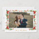 Esta primera tarjeta casada de Navidad es una hermosa manera de celebrar su primera Navidad como Sr. y Sra. Con una foto favorita enmarcada por acentos botánicos verdes y rojos festivos y una caligrafía elegante, combina el encanto alegre y luminoso de las vacaciones con un estilo recién casado intemporal. Perfecto para compartir con la familia y los amigos, esta tarjeta hace que su primera temporada de vacaciones juntos sea extra especial.