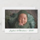 Esta adorable tarjeta de anuncio de foto-nacimiento de Navidades para un niño o chica es perfecta para celebrar a sus primeros Navidades con su recién nacido. Tiene el nombre de su bebé y el año en la parte delantera y el nombre completo, fecha de nacimiento, altura y peso, así como un sentimiento de personalizable completo, nombre de su familia y nombres de pila. A todo el mundo le encantará conseguir una foto de tu dulce recién nacido. Los tipos de letra son modernos y están limpios en un bonito verde profundo. Para hacer de esta tarjeta su propia, simplemente seleccione Personalizar esta plantilla, cargue una foto favorita de su hijo y escriba su nombre completo, fecha de nacimiento, peso, altura, nombre y apellidos. ¡Es muy fácil! En pocos segundos verá sus anuncios de nacimiento de vacaciones únicos y fabulosos.