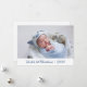 Esta adorable tarjeta de anuncio de foto-nacimiento de Navidades es perfecta para celebrar a sus primeros Navidades con su recién nacido. Tiene el nombre de su bebé y el año en la parte delantera y su nombre completo, peso, altura y fecha de nacimiento, así como un deseo de personalizable completo, su apellido y nombres en la parte posterior. A todo el mundo le encantará conseguir una foto de tu dulce recién nacido. Los tipos de letra son modernos y están limpios en un bonito azul. Para hacer de esta tarjeta su propia, simplemente seleccione Personalizar esta plantilla, cargue una foto favorita de su hijo y escriba su nombre completo, fecha de nacimiento, peso, altura, nombre y apellidos. ¡Es muy fácil! En pocos segundos verá sus anuncios de nacimiento de vacaciones únicos y fabulosos.