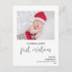 Primera caligrafía navideña Foto postal Foto moderna única foto en la primera tarjeta postal navideña con una moderna caligrafía en monolina palabra primera Navidad y pequeño dibujo de árbol de Navidad. El saludo de tus Navidades aparece en la parte de atrás. Esta moderna primera tarjeta postal de Navidad es una manera dulce de enviar a familiares y amigos un saludo de Navidades con la foto de su bebé.