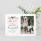 Celebra tu primera temporada de vacaciones como pareja casada con esta elegante tarjeta de fotos "Casada y Cereza". Con elegantes letras de guión y adornos de acuarela festivos de ramos de pino, campanas de oro, un arco clásico y tres de tus fotos bodas favoritas. Personalizable completo para que coincida con tu estética, puedes ajustar los colores, cambiar los tipos de letra y personalizar la redacción para que sea única tuya. Ya sea que esté enviando una alegre actualización o un sincero agradecimiento, esta tarjeta es una hermosa manera de compartir su amor y alegría de vacaciones con amigos y familia.