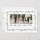 Envíe cálidos deseos y alegría recién casados con esta célebre tarjeta navideña que incluye la frase "Casado y brillante". Muestra tres de tus fotos bodas favoritas, bellamente enmarcadas por un borde acuático pintado a mano de bolas de pino y bayas rojas, para un aspecto romántico y de moda estacional. Perfecto para celebrar su primera temporada de vacaciones como pareja casada, esta tarjeta es completamente de personalizable: intercambia fotos, cambia los colores, actualiza las fuentes y personaliza el saludo para que se adapte a su estilo. Una manera alegre de compartir tu historia de amor y espíritu festivo todo en un bello recuerdo.