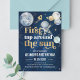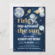 Despega hacia una celebración celestial con esta estelar invitación de cumpleaños "Primera vuelta alrededor del Sol". Con un encantador tema de espacio exterior con planetas, estrellas y una estética pintada a mano, es la forma perfecta de anunciar el gran hito de tu pequeño astronauta. Este diseño moderno y caprichoso es fácilmente personalizable, lo que garantiza que los detalles de tu fiesta de primer cumpleaños brillen como una supernova.
