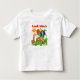 ¡Primeras camisetas del cumpleaños del bebé lindo y colorido del safari, monos, botones, y más, grandes para los niños que aman safaris de selva, características un león, la jirafa, las plantas tropicales, el sol, los globos, y el texto que lee la "mirada que es 1"!