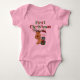 Primeras camisetas del navidad del bebé, monos, tarjetas, pegatinas, imanes, bolsas de asas del día de fiesta, y más con un diseño lindo del bebé y del reno. Usted puede añadir el nombre de su bebé a estos primeros artículos del navidad del bebé lindo fácilmente antes de ordenar.