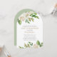 Un personalizado asequible imprimió invitaciones de la Primera Comunión con un elegante borde floral pintado con acentos de Relieve metalizado blanco, verde y falso oro. Personalice la plantilla con los detalles del evento o utilice las herramientas de diseño para personalizar del texto, elija los colores de fondo y edite los tipos de letra para crear su propio diseño de invitación único. En el lado inverso se muestra un fondo verde de bonito o se utiliza el espacio para agregar texto o fotos adicionales si es necesario. Este bonito diseño floral neutro es perfecto para cualquier temporada.
