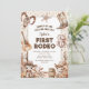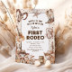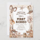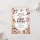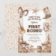 Captura el espíritu animado del Salvaje Oeste con nuestras invitaciones de primer cumpleaños. Personaliza una encantadora escena del desierto adornada con confeti, caballos, vacas y objetos icónicos de vaquero. Es el primer rodeo de tu pequeño, y confía en nosotros, estas invitaciones lo harán inolvidable.
