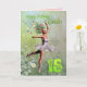 Un hermoso hada floral de bailarina bailando con una tarjeta de cumpleaños para un primo.