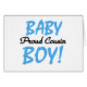 ¡El primo orgulloso de un bebé que quiera anunciarla al mundo amará estas las camisetas, los botones, las tazas, los bolsos, los pegatinas, las tarjetas, y más orgullosos del primo del diseño azul y negro del texto!