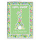 Una tarjeta de felicitación de Pascua de bonito para una abuela, con un lindo conejo conejo sobre un fondo verde pálido y un borde de rosas coloreadas. Por favor, siéntase libre de personalizar el mensaje interno. Por favor, siéntase libre de personalizar el mensaje interno.