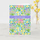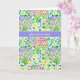Tarjeta del Día de la Madre de bonito con 'Feliz Día de la Madre' en sueco y un patrón de primroses rosa, azul profundo y amarillo, de un diseño pintado a mano por Judy Adamson.