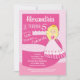 Chicas amables invitación para el quinto cumpleaños con una princesa rubia bonito en un gran número rosa con fondo de puntos de polka rosa y blanco.