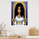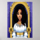 Un retrato de una hermosa Princesa Africana con el pelo largo y negro con un vestido blanco. Este es un arte generado por IA.