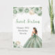Esta dulce tarjeta de 16 años cuenta con una hermosa princesa en un vestido de bolas verde sabio con arreglos florales. Es perfecto para una dulce fiesta de 16 años.