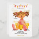 Una muñeca de bailarina fina con camiseta rosa y tubo amarillo. Esta bonita invitación a Baby Shower es perfecta para cualquier temporada. Añade tus detalles y disfruta del resplandor del Relieve metalizado dorado.