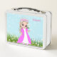 Princesa feliz vestida de rosa y flores. Texto listo para ser personalizado.