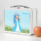 Princesa feliz vestida en turquesa con flores. Texto listo para ser personalizado.