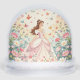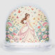 Princesa linda con tiara en vestido rosa, con diseño de flores y mariposas.