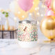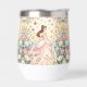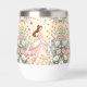 Princesa linda con tiara en vestido rosa, con diseño de flores y mariposas.