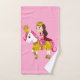 Toalla con un ilustracion de una princesa feliz vestida con un vestido rosado en un pony, un regalo agradable para las niñas y una gran decoración para una guardería o habitación de chica