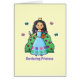 ¡La princesa que cultiva un huerto sostiene una espada de jardín y una maceta llenas de flores bonitas! La princesa perfecta para los chicas que aman el cultivar un huerto.