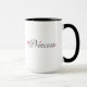 Esta taza de café ofrece la palabra "princesa" y tres corazones rosados.