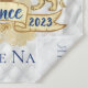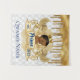 Adorable Príncipe Africano que lleva una corona de oro sobre la cresta y el estandarte de un león regio dorado con un fondo de goteo dorado y patrón de diamantes blancos. Texto “Príncipe” en Azul Real en el estandarte central y “est. 2022” a la izquierda y derecha. Personaliza con tu propio texto inferior. ©2022 Diseños de Fiesta de Miss Sassy